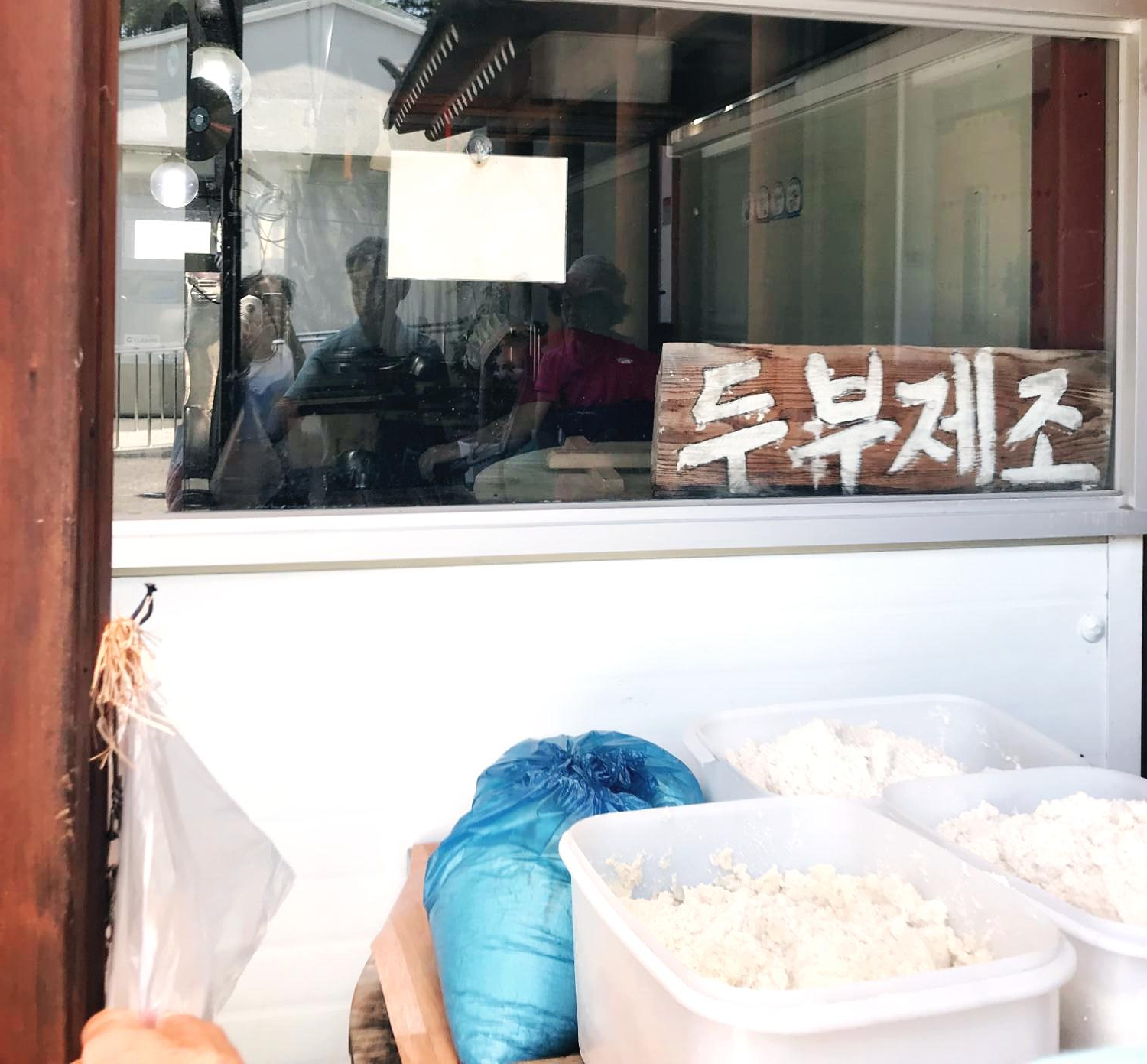 배불리 아침식사를 마치고, 떠나기 전 식당 현관 우측의 두부제조실을 들렀답니다. 위 사진에서 보이듯이 하얀 통들이 있는데요, 저기서 비지를 가지고 가실 수 있어요. 날이 더워 상할 우려가 되어 아주 소량만 담아서 가지고 갔답니다. (얼음팩들과 함께 온 덕분에 다행히 상하지 오는 동안 상하지 않았어요~)