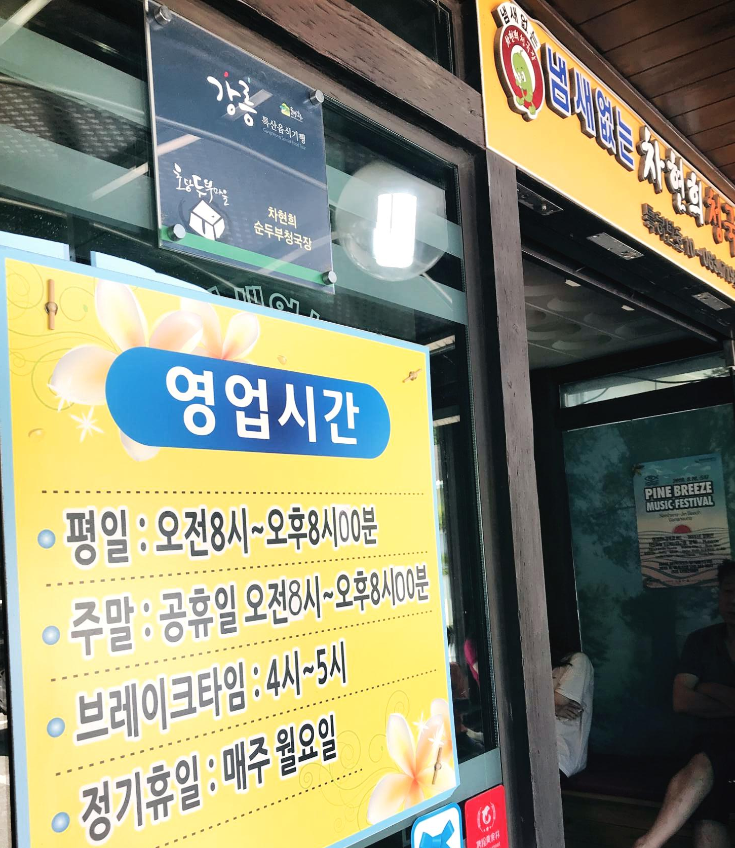 그 다음은 호텔 조식대신 선택한 초당순두부 마을의 맛집, 차현희 순두부 & 청국장입니다. 이 곳은 호텔 로비에서 직원분께 초당순두부 마을 가게 중 추천해달라고하여 알게된 맛집이었는데, 마스터셰프의 노희영대표가 세인트존스 호텔에 올때마다 늘 가는 맛집이라고 하더라구요~~!