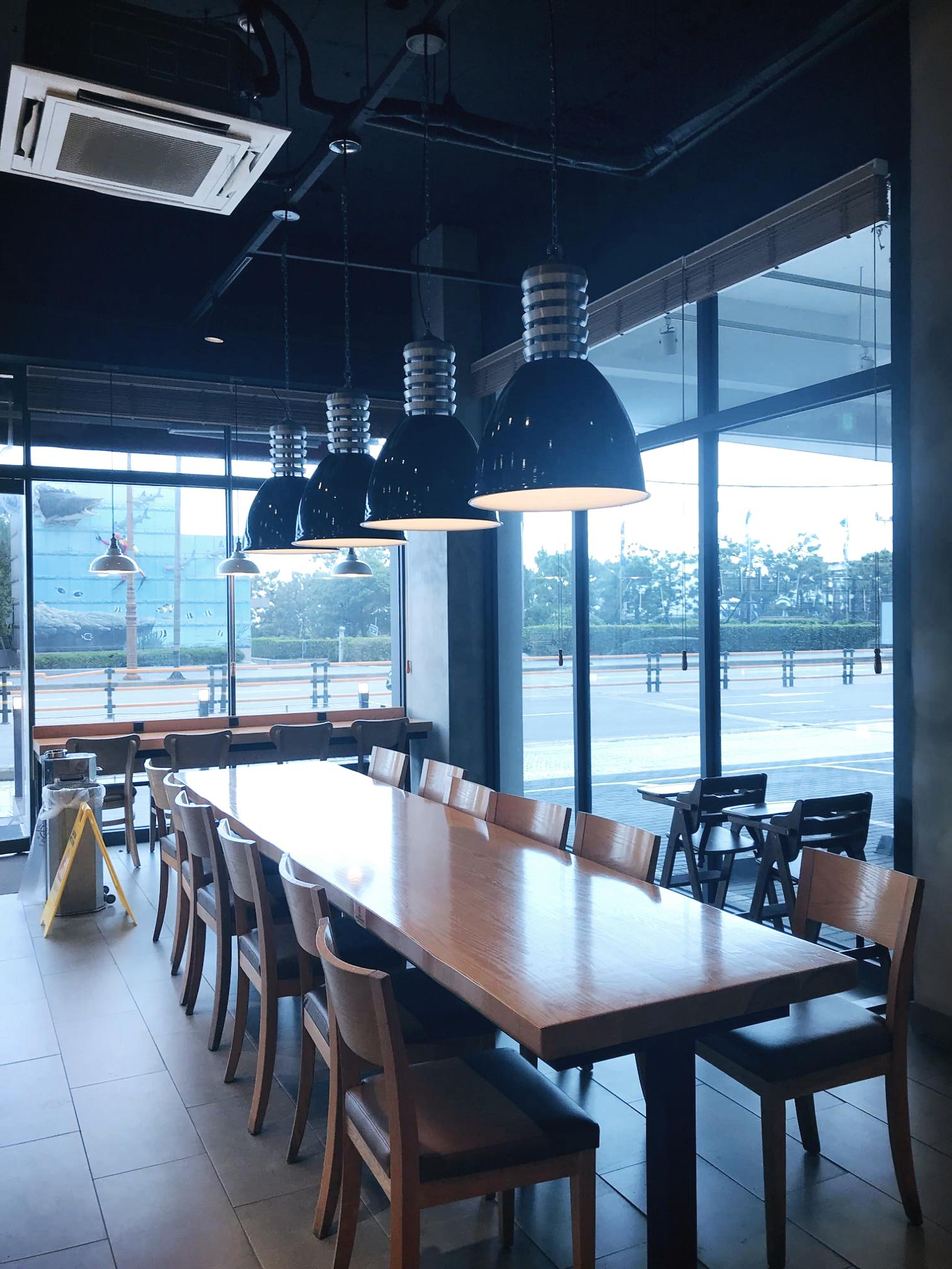 위치는 해운대 해변 바로 맞은 편에 있으며, 제가 묵은 해운대그랜드호텔에서 도보로 10분 이내 거리였어요. 평소였다면 아주 쉽게 다녀왔을 거리이지만, 이날 아침은 비바람이 다소 강해 조금은 어렵사리 다녀온 곳이었답니다. 별다른 기대없이 커피만 테이크아웃하려했는데 내부 인테리어가 주변에서 흔히 만날 수 있는 커피빈과는 사뭇 달라 매장에서 커피를 마시기로 했답니다.