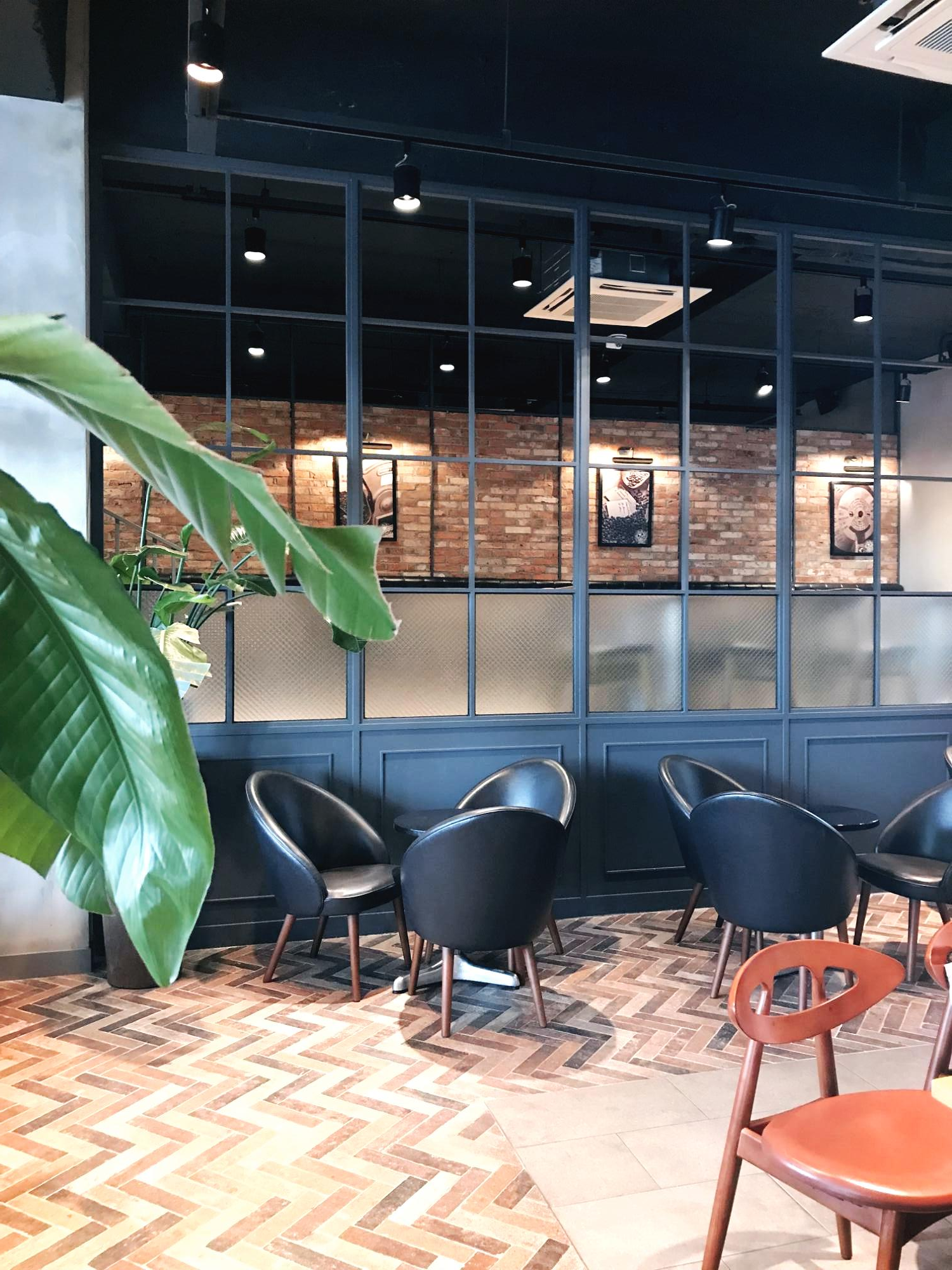 윗 사진에서 보시는 것과 같이 처음 매장에 들어섰을 때, 이 롱테이블만 놓인 카페인 줄 알았어요. 왜냐하면, 정문에서 정면을 바라보면 벽면이 보이고 이 롱테이블과 계산대가 함께 있기 때문이었어요. 하지만, 가게를 조금 들어서니 벽면 왼편으로 복도가 있고 그 안에는 엄청나게 큰 규모의 공간이 있었답니다. 이른 시간이라 저희가 전세를 내다시피 사용했어요.